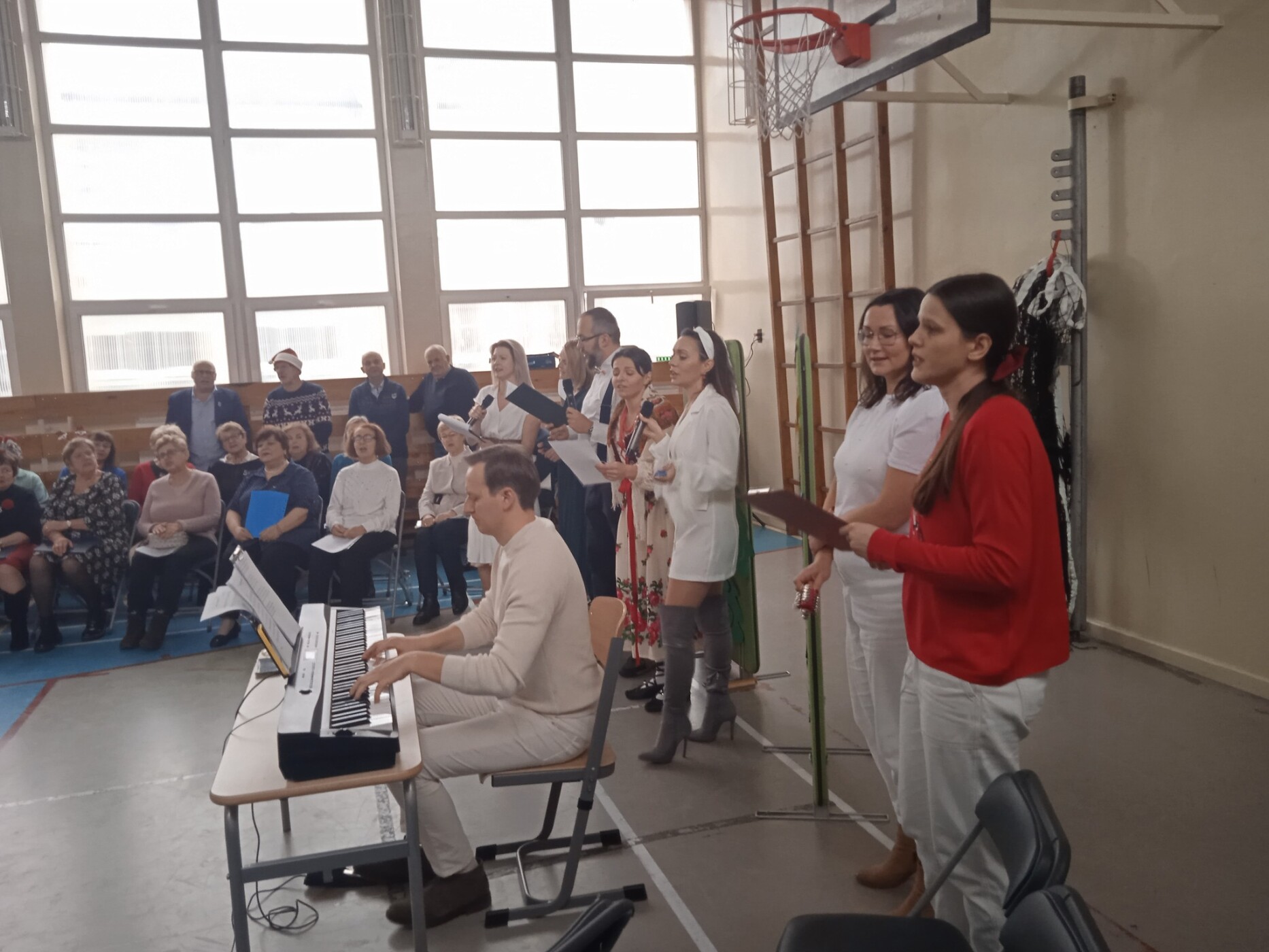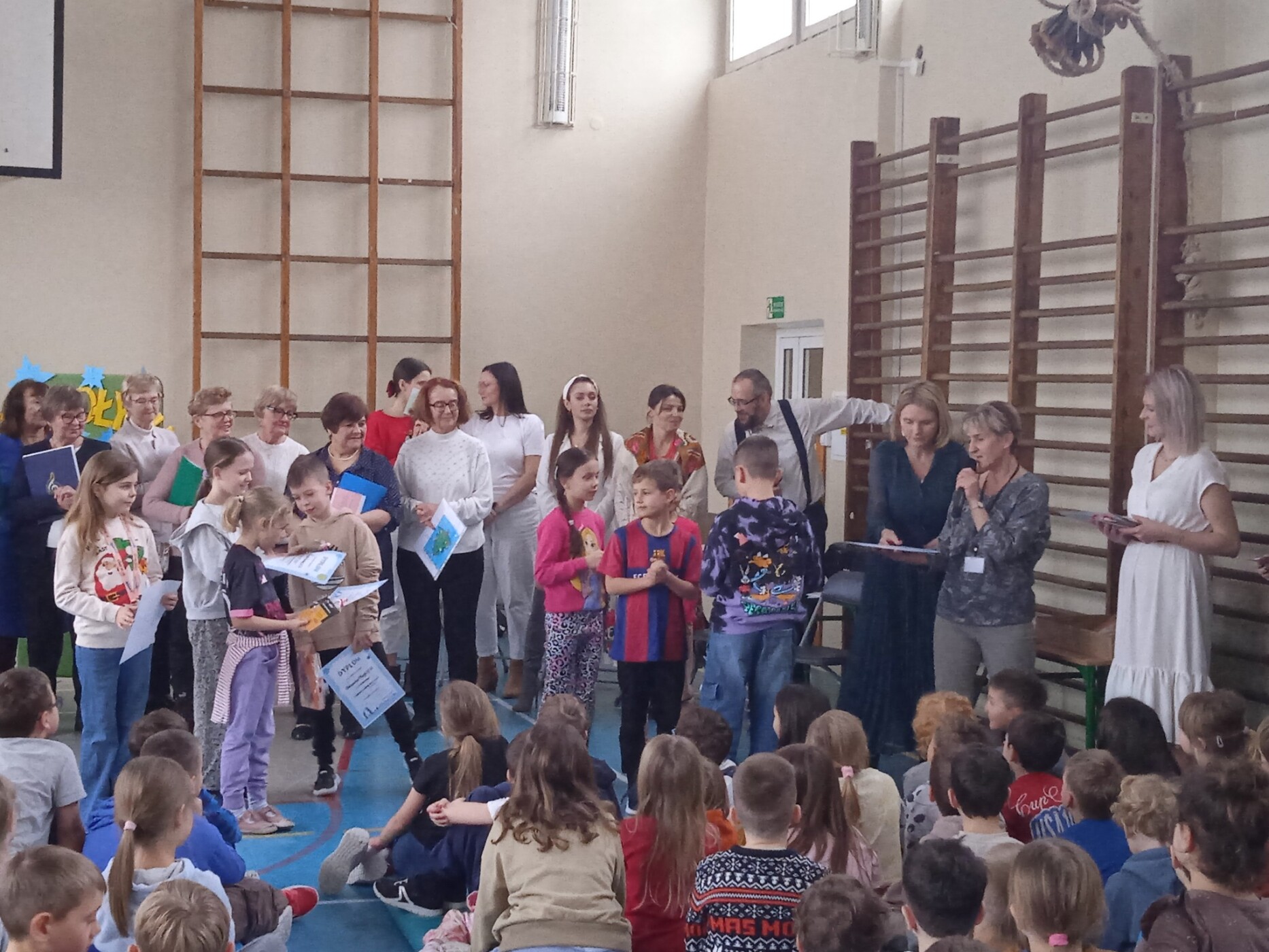 18 grudnia, w naszej szkole odbył się wyjątkowy koncert z udziałem rodziców oraz seniorów. Seniorzy z Wawerskiego Klubu Seniora oraz przedstawiciele Rady Rodziców zaprezentowali uczniom piękne kolędy i pastorałki, tworząc niezwykle ciepłą, świąteczną atmosferę. Dzieci z radością i dużym zaangażowaniem dołączały do występujących, a wspólne kolędowanie sprawiło, że wydarzenie stało się prawdziwie integrującym, międzypokoleniowym spotkaniem.