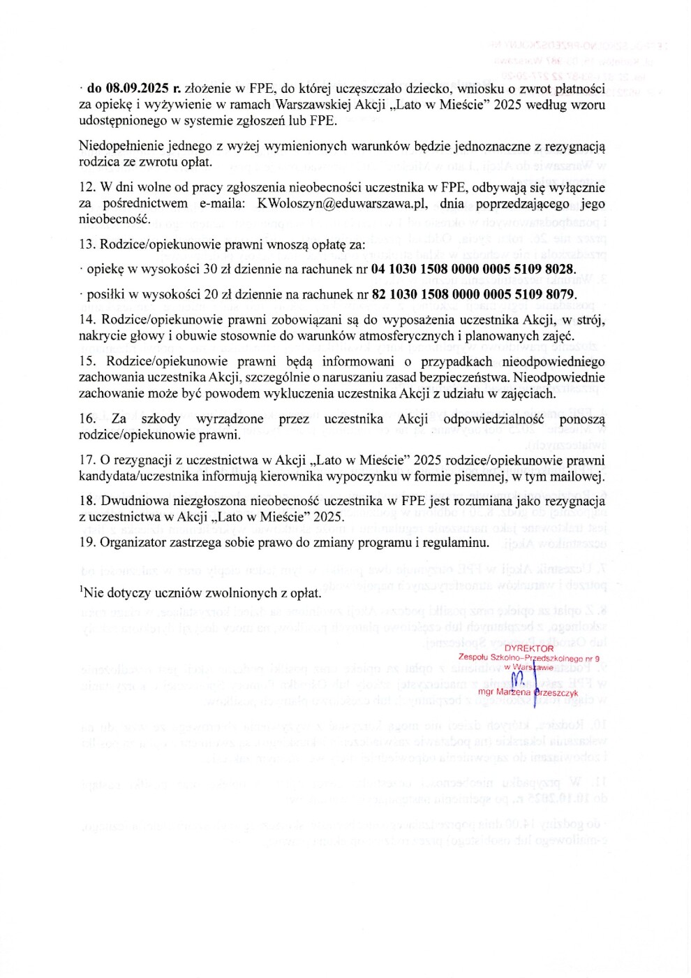 tegoroczna Akcja Lato w Mieście w naszej szkole odbywać się będzie w dniach od 11 do 29 sierpnia 2025r.